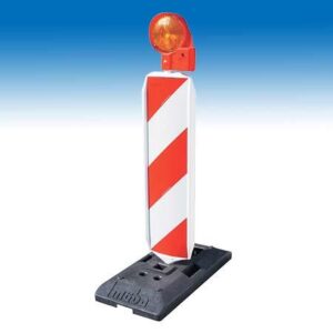 Leitbake Kunststoff doppelseitig mieten - rot/weiß schraffiert Unsere Leitbaken aus Kunststoff in rot/weißer Schraffur eignen sich hervorragend für die Verkehrssicherung und Baustellenabsperrung. Dank doppelseitiger Folierung…