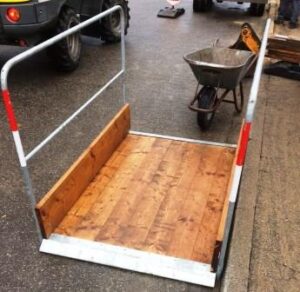 Grabenbrücke 2,00 × 1,00 m mieten - sicherer Übergang für Fußgänger und Rollstuhlfahrer Die kompakte Grabenbrücke aus Holz mit verzinktem Stahlgestell und steckbarem Seitengeländer ist…