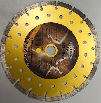 Diamanttrennscheibe 230 beton profiDiamant Trennblatt BET GOLD 230mm x 22.23mmEinsatzbar für folgende Materialien:Beton, Betonerzeugnisse, Kunst und Natursteine, allgemeines Baumaterial, nicht für abrasive Materialien Drehzahl zul. 6.650 min-1Umfangsgeschwindigkeit zul. 80m/sDIN EN 13236Nass + Trocken Schnitt möglich. Diamanttrennscheibe 230 Beton Profi auch für armierten Beton jetzt günstig kaufen bei uns. Bitte erfragen Sie die Preisstaffel für Großmengen.