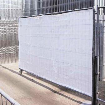 Sichtschutzplane weiß für Bauzaun mieten – Netzstruktur, winddurchlässig